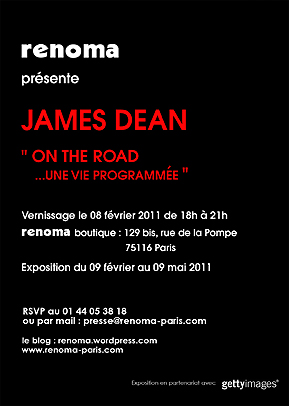Pour célébrer cet événement, Renoma vous présente cette superbe exposition James Dean, qui se tiendra jusqu’au 9 mai 2011.