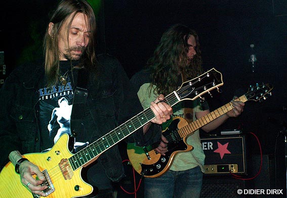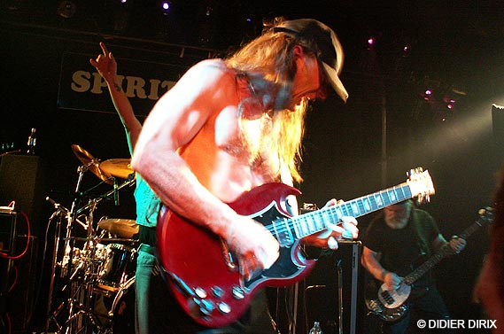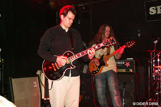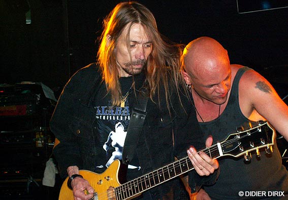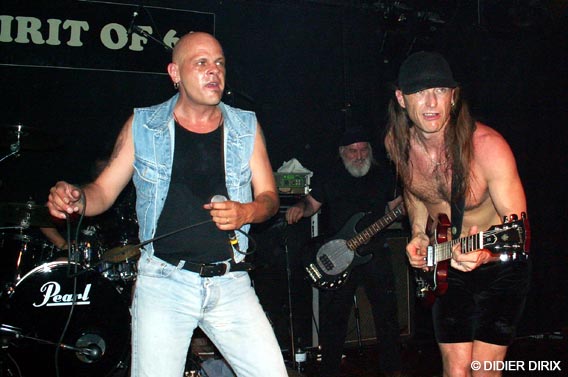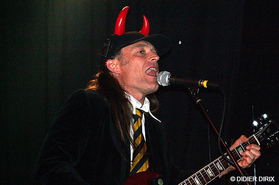 D’autant que le show ne faisait que commencer, je vous l’assure. Nos hardeux étincelants sont remontés sur scène, les jacks et les baguettes entre les dents pour reprendre de plus belle une sarabande métalleuse de fin du monde avec un sens du beat massif comme un haut fourneau. Le batteur et le bassiste emmurés dans le son parfait ont fait trembler les murs. Une rythmique métronomique qui assure mieux qu’Ethias et un lead guitarist hors normes alignant les riffs les plus époustouflants (comme l’autre là, l’Angus chose... j’vais pas dire le vrai parce que je ne sais plus qui est le vraiment vrai...) ont mis le turbo plein pot. Hell’s Bells et Rock And Roll Damnation ça vous rentre dedans comme un quinze tonnes lâché dans la descente du Sart Tilman (ben oui, quoi, je prends des exemples locaux, j’suis de Liéééche moi...).