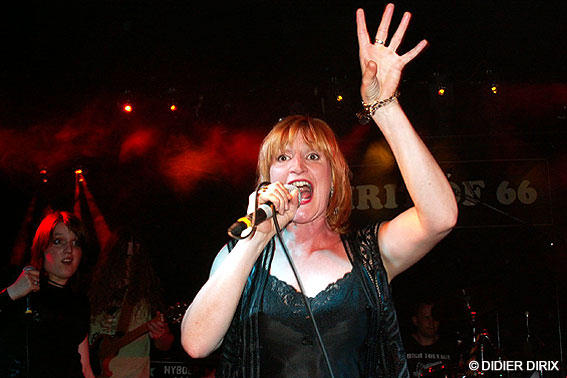 Sans chercher à décerner des médailles tant les invités se sont donnés à fond dans ce gig, il faut quand même reconnaître que BJ Scott a fait fort... très fort même !!! On la connaît comme vocaliste de talent, on n’ignore rien de sa soul power, on sait qu’elle adore les confrontations et qu’elle est capable de s’adapter à tous les terrains mais quand même... Dominer la masse musicale musculaire d’un combo comme High Voltage rien que par la voix, j’avoue que ça laisse pantois. Ses sorties dans les aigües et sa rivalité vocale survoltée avec les percées de lead de Vincent Fis resteront à jamais dans ma mémoire... Géant ce qu’elle a fait là, la Divine Beverly !!! Ce Shot Down In Flames de derrière les fagots qu’elle chantait pour la première fois est, à mon avis, un des plus grands événements dans la petite histoire du Spirit of 66 !!!